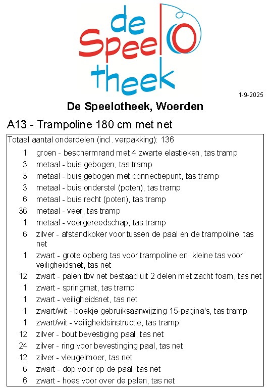 Vorm: Rond Ø 180 cm 3 poten Belastbaar tot: 50 kg Inclusief veiligheidsnet