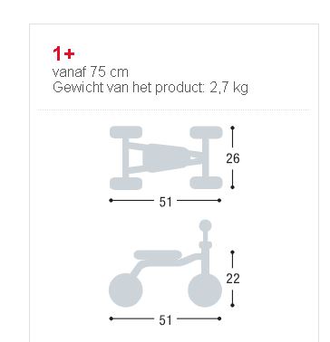 - Opstelmaten - Puky Pukylino: (L) 51 cm x (B) 26 cm x (H) 0 cm